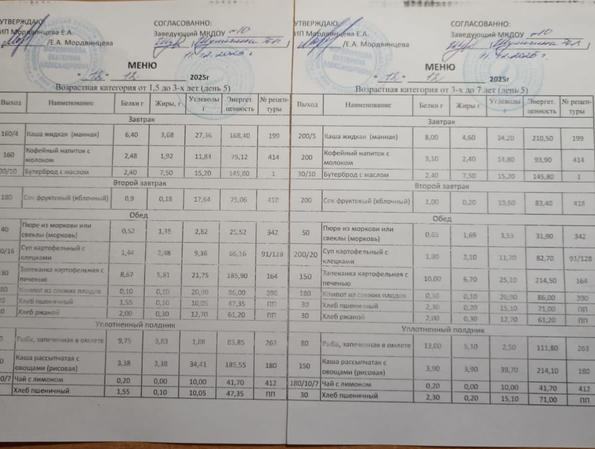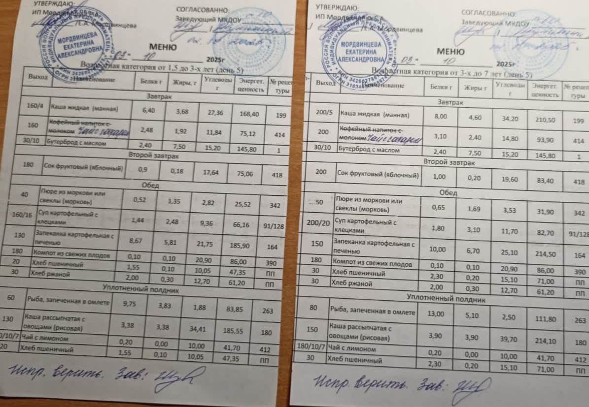 Примерное 10-ти дневное меню для детей 1.5 - 3 лет PDF